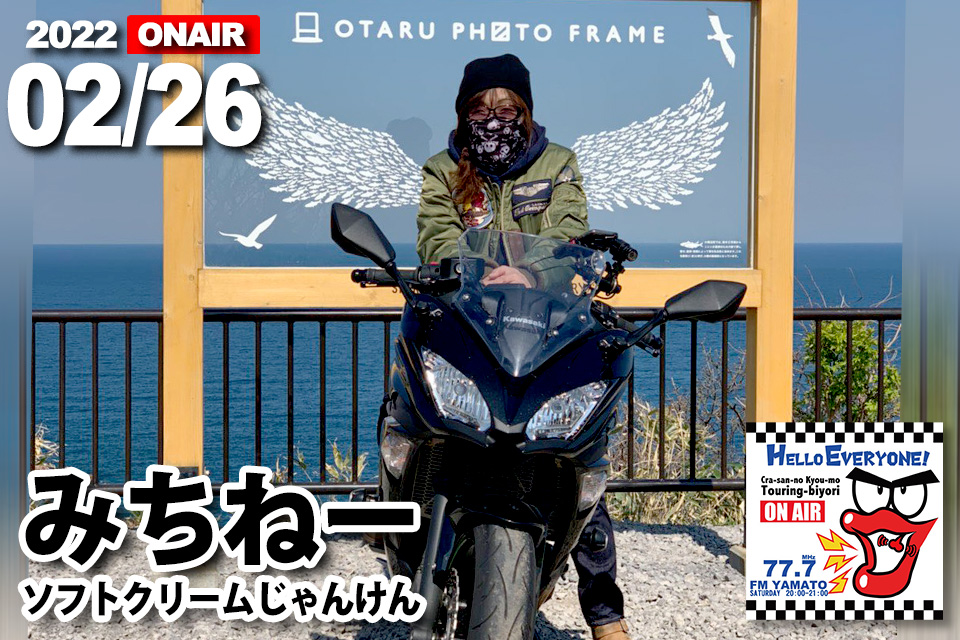 2022年02月26日土曜日20時放送のくらさんの今日もツーリング日和  「 Motorcycle friendship」バイクの輪ゲストは、前回の「なまらバイクチャンネル」りょーさんのご紹介で、ソフトクリームじゃんけん みちねーさんにご出演いただきます。