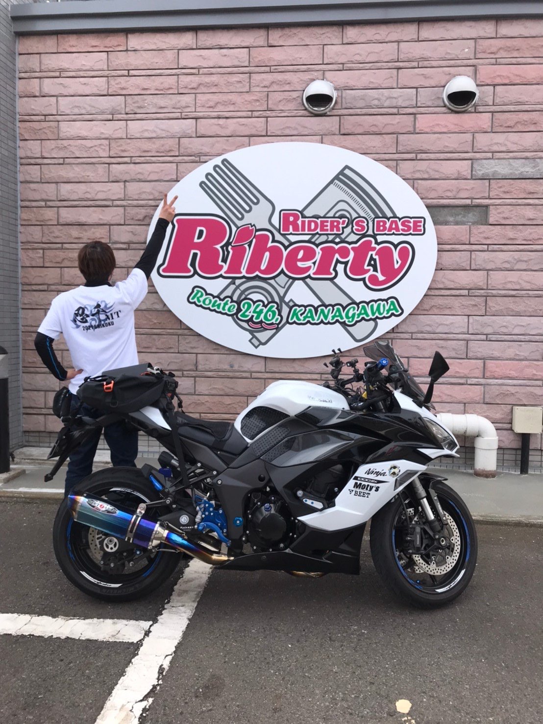 バイク歴は16歳から。ヤマハFZ400を購入後、高速道路がきついと感じ、大型取得しホンダCB1300SFを購入。途中10年ほどブランクがあり4年前にリターンライダーに。フルカウルのNinja1000を経て、現在のNinja1000SXホワイトに乗り換え。その後、四国忍千会を結成&代表に就任。現在の横浜に転勤後も四国忍千会代表を務める。