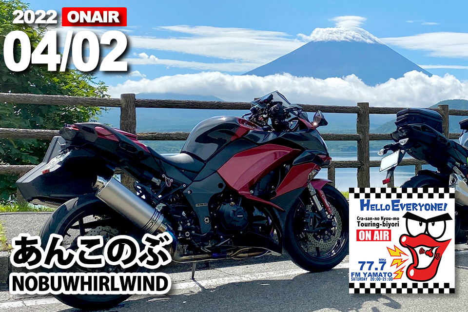 2022年04月02日土曜日20時放送のくらさんの今日もツーリング日和 「 Motorcycle friendship」バイクの輪ゲストは、前回のTomo白忍千SX さんのご紹介で、NOBUWHIRLWIND あんこのぶ さんにご出演いただきます。