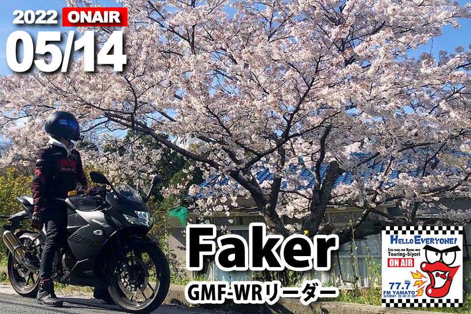 2022年05月14日土曜日20時放送のくらさんの今日もツーリング日和 「 Motorcycle friendship」バイクの輪ゲストは、前回のみっちゃんのご紹介で、フェイカーさんにご出演いただきます。