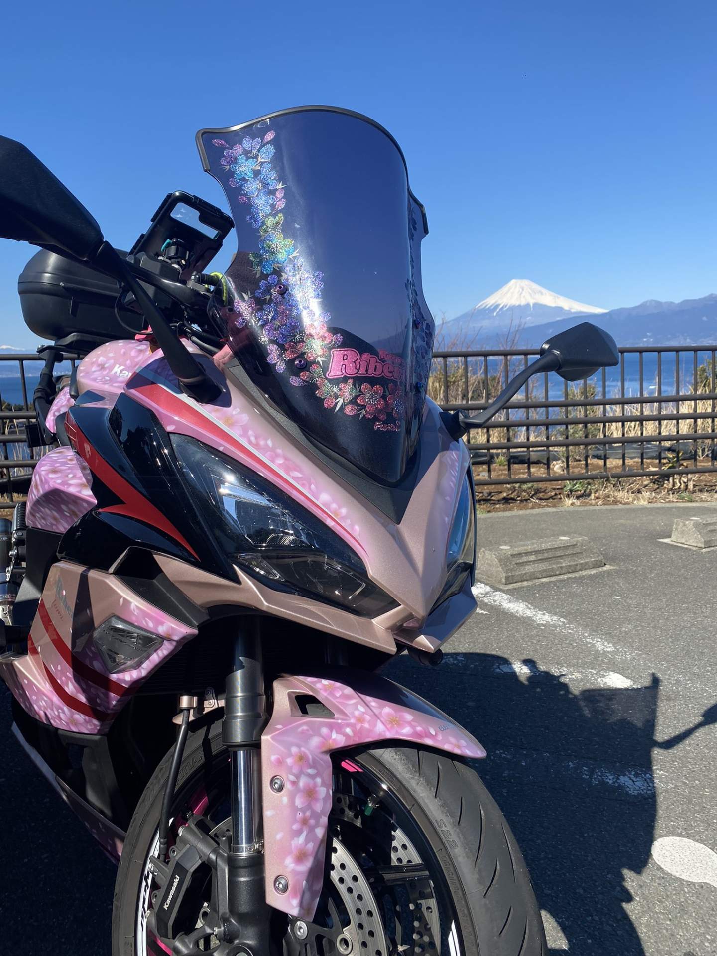 今のメインは大好きな桜柄にオールペイントして貰った忍千です。過去に2度購入を検討しましたが、重量とクラッチの重さ、足つきに不安が有り断念。2回とも650ccを購入。